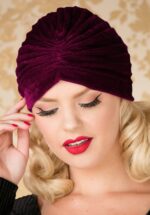 „Cache-misère!“ Das ist der französische Ausdruck für einen Turban und er bedeutet „verstecke das Elend“… ein lustiger Name für eine Kopfbedeckung die eine schlecht sitzende Frisur verstecken soll. Und das ist durchaus möglich mit diesem 20s Warlock Velvet Turban Hat in Burgundy! Er ist hergestellt aus einem dehnbaren Velours in Burgund mit einem verspielten Knoten-Detail in der Mitte für eine luxuriöse und warme Ausstrahlung. Du kannst ihm einen persönlichen Akzent verleihen indem du eine schöne Brosche daran steckst oder hübsche Ohrringe dazu trägst. Es war noch nie so leicht auf stilvolle Weise im Winter den Kopf warm zu halten. * Elastisch * Velours