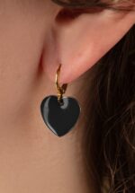 Total verliebt in diese Ohrringe! Denn sie sind federleicht und wurden mit einem vergoldeten Messing Haken versehen an dem ein herzförmiger, emaillierter Anhänger in Schwarz hängt. * Ohrhänger * Vergoldeter Leverback Verschluss aus Messing * Emaille * Kupfer * Verfärben nicht und färben nicht ab  * Nickelfrei (anti-allergen)