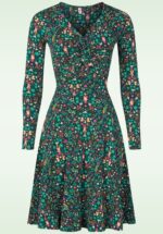 Wo Blumen blühen und süße Hasen aus dem Zylinder hüpfen … dieses langärmelige Kleid ist ein absoluter Hingucker! Es hat einen wunderschönen Ausschnitt mit Twist-Detail und geht von der Taille aus in einen fließenden, halbschwingenden Rock über. Der weiche, elastische Bio-Baumwollmix in Dunkelgrün ist mit einem bunten, zauberhaften Print versehen.   * Semi-Swing-Modell * V-Ausschnitt * Twist-Detail * Lange Ärmel * Kein Reißverschluss, keine Knöpfe: einfach überziehen und los geht’s! * Endet bei einer Körpergröße von 1,70 m unterhalb des Knies