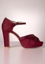 Gloria Satin Peeptoe Pumps in Weinrot“Less is more does not apply to shoes!“ Diese Peeptoe Schätzchen mit feinem Plateau und einem stabilen, hohen Absatz wurden aus einem bordeauxroten Stoff mit der luxuriösen Optik und Haptik von Satin gefertigt, Die weiche Innensohle aus Leder sorgt für einen angenehmen Tragekomfort. * Peeptoe Pump * Satin * Stabiler, hoher Absatz * Subtiles Plateau * Verstellbarer Knöchelriemen * Bequeme Innensohle aus Leder * Anti-Rutsch Sohle