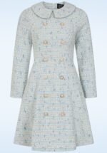 Grace Avenue A-Linien-Bouclé-Kleid in BabyblauLuxuriöser Style und anmutige Eleganz: Dieses langärmelige Kleid mit niedlichem Kragen, auffälligen goldfarbenen Zierknöpfen und verspieltem A-Linien-Schnitt ist ein absoluter Hingucker. Es ist aus einem etwas dickeren und festen, aber dennoch weichen, boucléähnlichen Stoff (kaum dehnbar) in Weiß- und Blautönen gefertigt und lässt sich herrlich angenehm tragen. * Ausgestellter Schnitt * Kragen * Lange Ärmel * Doppelte Zierknopfleiste * Seitliche Eingrifftaschen * Verdeckter Reißverschluss hinten * Vollständig gefüttert * Endet bei einer Körpergröße von 1,70 m knapp auf Kniehöhe