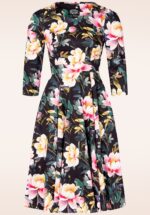 • Deirdre Florales Swingkleid in Schwarz und mehrfarbig
