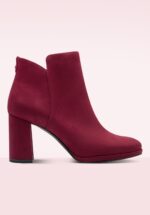 Geschmeidig weich und trotzdem trittsicher: Diese Stiefeletten aus tiefrotem veganem Wildlederimitat haben einen hohen Blockabsatz und eine niedrige Plateausohle. * Runde Zehenkappe * Hoher Blockabsatz * Seitlicher Reißverschluss * Bequemes TOUCHit-Soft-Fußbett * Rutschfeste Laufsohle und Absatz * Vegan approved!
