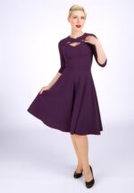 “Purple is the colour of dreams, inspiring visions of grandeur!“ Dieses vintage-inspirierte Kleid zeigt eine auffällige Semi Swetheart Halslinie mit gekreuztem Detail und wurde aus einem dehnbaren, crêpeartigen Stoff in Aubergine gefertigt, der sich herrlich trägt. * Semi Swing Modell * Sweetheart Halslinie mit gekreuztem Detail * 3/4 Ärmel * Verdeckter Reißverschluss hinten * Reicht bei einer Größe von 1,70 m etwas über das Knie * Julia Fiore ist 1.70m groß