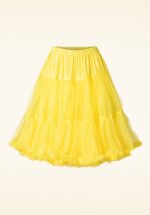 “Behind every great twirl is a trusty petticoat!“ Die doppelte Stoffschicht verleiht extra Volumen und schwingt graziös mit dir mit und wurden mit verspielten Rüschen am Saum versehen. Die oberste Schicht wurde aus zitronengelbem Tüll und der Unterrock aus glänzendem Satin gefertigt. Vollendet mit einem elastischen Bund. Dieser Petticoat verleiht jedem Swing Kleid das gewisse Extra! * Geeignet für all unsere Swing Kleider und Röcke * Elastischer Taillenbund * Fällt über das Knie bei einer Größe von 1,70 m