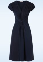 “Found my blue!“ Suki ist perfekt für den Sommer; denn sie wurde aus einem glatten und angenehmen, leicht glänzenden, dehnbaren marineblauen Stoff gefertigt – garantiert knitterfrei. Die ideale Reisebegleiterin! 😉 * Semi-Swing Modell * Kurze Ärmel * V-Ausschnitt * Geknotetes Detail unter der Brust * Plissierter Taillenbund * Kein Reißverschluss oder Knopf * Endet bei einer Größe von 1.70 m etwas oberhalb des Knies