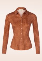 “Sustainable, wearable, unforgettable!“ Diese komfortable Bluse zeigt ein klassisches Modell mit einem spielerischen Muster und ist die perfekte Ergänzung für deinen Kleiderschrank! Gefertigt aus einem geschmeidig fallenden, weichen und elastischen, recycelten Stoffmix in Toffee, versehen mit einem geometrischen Muster in Herbstfarben. * Spitzer Kragen * Lange Ärmel * Knopfreihe * Lang genug, um mit einer normalen Hose kombiniert zu werden