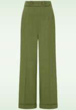 Zeitlos, schick und ganz dein Stil: Diese elegante Hose mit hoher Taille ist feminin geschnitten und mit einem dekorativen Gürteldetail mit Knöpfen versehen, das eine schöne Silhouette zaubert. Die seitlichen Eingrifftaschen sorgen für eine lässige und zugleich stylische Note, während die weiten, geraden Hosenbeine eine moderne und schmeichelhafte Passform bieten. Die grüne Hose ist aus einem weichen Mischgewebe mit einem Hauch Viskose gefertigt und besticht durch ein dezentes Karomuster in Dunkelbraun. Ein echter Klassiker mit einem modernen Touch! * Hohe Taille * Dekoratives Gürteldetail mit Knöpfen * Seitliche Eingrifftaschen * Reißverschluss mit Haken auf der Rückseite * Weites, gerades Bein mit fixiertem Saumumschlag
