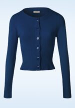 Wie eine Umarmung zum Anziehen: Der Cardigan Dolly vereint klassischen Chic mit Komfort und einer verspielten Note. Mit elegantem Rundhalsausschnitt, langen Ärmeln und großen, glänzenden Knöpfen. Hergestellt aus hochwertigem, nachtblauem Strickstoff, der dank seines Stretchanteils wie angegossen sitzt. Die Styling-Möglichkeiten sind endlos! * Rundhalsausschnitt * Lange Ärmel * Knopfleiste * Elastische Bündchen an Ausschnitt, Ärmeln und Saum * Ideale Länge, um den Cardigan auch zu Low-Waist-Hosen zu tragen