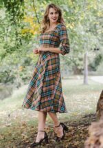 Karos, schicker Style und romantische Küsse unter dem Mistelzweig! Das Kleid Diana ist genau das Richtige für die Weihnachtszeit: Es hat einen U-Boot-Ausschnitt, ¾-Ärmel und ein elegantes Karomuster in Rot und Blau. Ab der Taille fällt es als fließender Swingrock mit praktischen Taschen, der eine tolle feminine Silhouette zaubert. Das Modell ist aus einem festen, aber dennoch geschmeidigen Mischgewebe gefertigt, das traumhaft zu tragen ist. * Swing-Style * U-Boot-Ausschnitt * ¾-Ärmel * Seitliche Eingrifftaschen * Reißverschluss mit Haken hinten * Endet bei einer Körpergröße von 1,70 m unterhalb des Knies