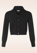 “I’m all about the fall feels!“ Violet zeigt einen spielerischen Deckkragen und wurde aus einem weichen und feingestrickten Viskosemix in Schwarz gefertigt, der dich an kälteren Tagen herrlich warm hält. * Umgeschlagener Kragen * Knopfreihe * Lang genug, um mit einer normalen Hose kombiniert zu werden