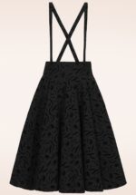 Tagsüber schick, nachts schaurig schön! Dieser bezaubernde Swingrock aus einem festen, aber dennoch geschmeidigen Stoff besticht durch einen durchgehenden Halloween-Print und seine samtige Optik und Haptik. Die abnehmbaren Träger verleihen dem Modell einen verspielten Vintage-Touch, während die praktischen Taschen und der leichte Stretchanteil für optimalen Tragekomfort sorgen. Perfekt für einen gruselig schicken Look in diesem Herbst! * Weiter Swing-Style * Abnehmbare Träger * Reißverschluss mit Haken auf der Rückseite * Kann mit einem unserer Petticoats kombiniert werden * Endet bei einer Körpergröße von 1,70 m unterhalb des Knies