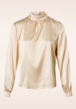 Diese Natalie Blouse in Cream ist klassisch, verspielt und elegant! Sowohl classy als auch süß und daher perfekt für jede Gelegenheit geeignet. Diese glänzende Bluse hat eine schöne, hochgeschlossene Halslinie mit schmeichelnden Falten, ein subtiles Keyhole hinten mit drei zierlichen Knöpfchen und lange Ärmel mit Manschetten. Hergestellt aus einem glänzenden Stoff in Creme mit kleinem Stretch-Anteil und einem eingearbeiteten Muster. Wann wirst du diese Bluse tragen? * Hochgeschlossene Halslinie * Keyhole hinten mit drei zierlichen Knöpfchen * Lange, puffige Ärmel mit Manschetten * Länge ist ausreichend um sie zu einer normalen Hüfthose zu tragen