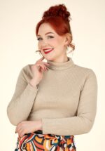 “It’s the glitter things that count!“ Dieser glänzende Pullover hält dich warm an kälteren Tagen und wurde aus einem herrlich angenehmen , dehnbaren, beigen Stoff gefertigt, der mit einen eingearbeiteten Lurex Glitzerfaden versehen wurde . * Rollkragen * Eingearbeiteter Glitzerfaden * Lang genug, um mit einer normalen Hose kombiniert zu werden