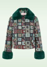 Kent 70s Patch Kurzjacke mit Jacquardmuster in MulticolorEin toller Schnitt und ein verspieltes Printmotiv: Diese Kurzjacke lässt keine Wünsche offen. Kragen und Manschetten sind in Kunstpelz gearbeitet, der feste und etwas dickere Jacquardstoff (nicht dehnbar!) zeigt ein buntes Patchworkmuster im Stil der 70er Jahre. * Kurzer Schnitt * Kunstpelz * Lange Ärmel * Knopfleiste * Vollständig gefüttert * Mit Taschen! * Der passende A-Linien-Rock ist separat in unserem Shop erhältlich.