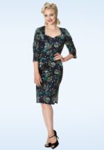 Pfauenfeder Bleistiftkleid in Dunkelblau
