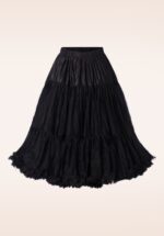 “Behind every great twirl is a trusty petticoat!“ Die doppelte Stoffschicht verleiht extra Volumen und schwingt graziös mit dir mit und wurden mit spielerischen Rüschen am Saum versehen. Die oberste Schicht wurde aus schwarzem Tüll und der Unterrock aus glänzendem Satin gefertigt. Vollendet mit einem elastischen Bund. Dieser Petticoat verleiht jedem Swing Kleid das gewisse Extra! * Plus-size * Geeignet für all unserer Swing Kleider und Röcke * Elastischer Taillenbund * Fällt über das Knie bei einer Größe von 1,70 m