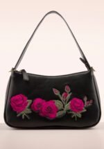 “Roses are red, violets are blue, we think this bag was just made for you!“ Diese romantische Handtasche wurde aus schwarzem Kunstleder gefertigt und mit gestickten Rosen verziert. – Liebe auf den ersten Blick! * Kunstleder * Goldfarbene Details * Kurzer Henkel * Abnehmbarer, langer, verstellbarer Gurt * Kann ‚crossbody‘ getragen werden * Innenfach mit 3 zusätzlichen Fächern, eins mit Reißverschluss * Fach mit Reißverschluss an der Rückseite der Tasche * Komplett gefüttert mit einem Stoff in Magenta * Ausreichend Platz für dein Portemonnaie, Handy, deine Schlüssel und deinen liebsten Lippenstift