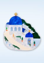 „Weiß getünchte Mauern, blaue Kapellen und ein Himmel, der mit dem Meer verschmilzt. Bei Sonnenuntergang hält die Insel Santorin für einen Augenblick den Atem an, und es scheint, die ganze Welt steht still.“ * Online in den Niederlanden, Deutschland und Belgien exklusiv bei Topvintage erhältlich * Aus mehreren Schichten Harz gefertigt, von Hand montiert und bemalt * Silberfarbener Sicherheitsnadel-Verschluss * Kollektion „Eine griechische Odyssee“ * Entworfen von Shea O’Connor