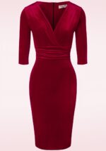 Ein klassisches Kleid stand schon immer an der Spitze deiner Wunschliste? Dann ist dieses 50er Nehla Bleistift Samt-Kleid in Rot bestimmt das perfekte Kleid für dich. Mit einem hübschen Top in Wickeloptik mit Raffungen, 3/4 Ärmel und einen Taillebund mit Raffungen der super schmeichelnd wirkt. Es ist hergestellt aus einem wundervollen, geschmeidigen, dehnbaren und weichen Samt-Stoff in Tiefrot der deine Kurven perfekt betont ohne aufzutragen. Denn Eleganz wird nie aus der Mode geraten ;-)! * Figurbetontes Modell * Gefüttertes Top in Wickeloptik mit Raffungen * 3/4 Ärmel * Vorteilhafter Taillenbund mit Raffungen * Verdeckter Reißverschluss auf der Rückseite * Endet unterhalb des Knies bei einer Größe von 1.70m