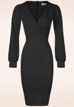 Schlank, elegant und atemberaubend! Mikaela ist elegant und trotzdem frech. Das Kleid mit langen Puffärmeln und dekorativen Knöpfen auf der Vorderseite hat eine figurschmeichelnde Passform und ist unglaublich angenehm zu tragen. Es ist aus einem festen, aber dennoch geschmeidigen und elastischen schwarzen Mischgewebe gefertigt, das durch einen dezenten Fischgrät-Effekt besticht. * Figurbetonter Schnitt * Gefütterter Überkreuzausschnitt * Lange Puffärmel * Zierknöpfe vorne * Verdeckter Reißverschluss auf der Rückseite * Endet bei einer Körpergröße von 1,70 m unterhalb des Knies