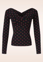 Lovebirds Kiss Oberteil in Red-Rosehip-SchwarzDas ist nicht nur irgendein Oberteil, sondern ein blühendes Statement! Dieses wunderschöne Longsleeve mit V-Ausschnitt vorne und hinten ist aus einem schwarzen, elastischen Bio-Baumwollmischgewebe gefertigt, das extra umweltfreundlich ist und unter besseren und sichereren Arbeitsbedingungen hergestellt wird. Das Modell besticht durch ein kleinformatiges rotes Blumenmuster. * Lange Ärmel * V-Ausschnitt vorne und hinten * Passend für Hosen mit normaler Leibhöhe
