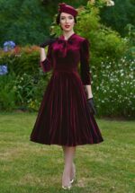 Vera Samt-Swingkleid in Weinrot
