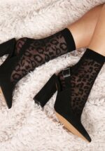 • Transparente Strümpfe mit Leopardenmuster in Schwarz