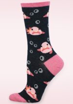 “Any-fin is possible!“ 😉 Diese Socken wurden mit lustigen rosa Blobfischen gemustert, reichen bis weit über den Knöchel und wurden aus einem weichem, dehnbaren Baumwollmix in Schwarz gefertigt. * 1 Paar Socken * Baumwollmix * Reicht bis weit über den Knöchel * Passt bei Schuhgröße 35-42