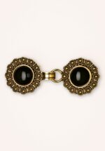 Westenclips in Gold und SchwarzWir sind so verliebt in diese 20er Strickjacken Clips in Gold und Schwarz! All die hübschen Strickjacken, Jäckchen und Kimonos ohne Verschluss, die du jetzt doch schließen kannst – dank dieser Beautys. Auch an einem Poncho, Schal oder Bluse sehen sie phantastisch aus. Den zeeländischen (NL) Knöpfen nachempfunden, wurden sie aus einem antiken goldfarbenen Metall mit schwarzen Steinchen gefertigt und mit praktischen Clips vollendet. Hübsch und auch praktisch… unsere Lieblingskombination! 😉 * Clips * Haken- und Ösenverschluss