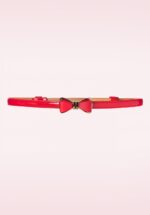 Dieser 50s Ocean Avenue Bow Belt ist ein classy Gürtel im Vintage Stil. Dieser wunderschöne, schmale, verstellbare Gürtel ist hergestellt aus rotem Lack mit einer eleganten, goldfarbenen Schleife, très chique! Subtiler Gürtel mit hohem Wow-Faktor und ein Muss für alle vintage Ladies!   * Wird mit einem goldfarbenen Hakenverschluss in Form einer Schleife verschlossen * Verstellbar