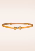 Dieser schmale Gürtel rundet jedes Vintage-Outfit perfekt ab! Das Modell aus Lackleder-Imitat in Senfgelb ist mit einer eleganten Schleife mit goldfarbenen Akzenten versehen. Schicker geht es kaum! Ein edler Gürtel mit Wow-Faktor und ein absolutes Must-have für alle Vintage-Fans! * Goldfarbener Hakenverschluss in Schleifenform * Verstellbar